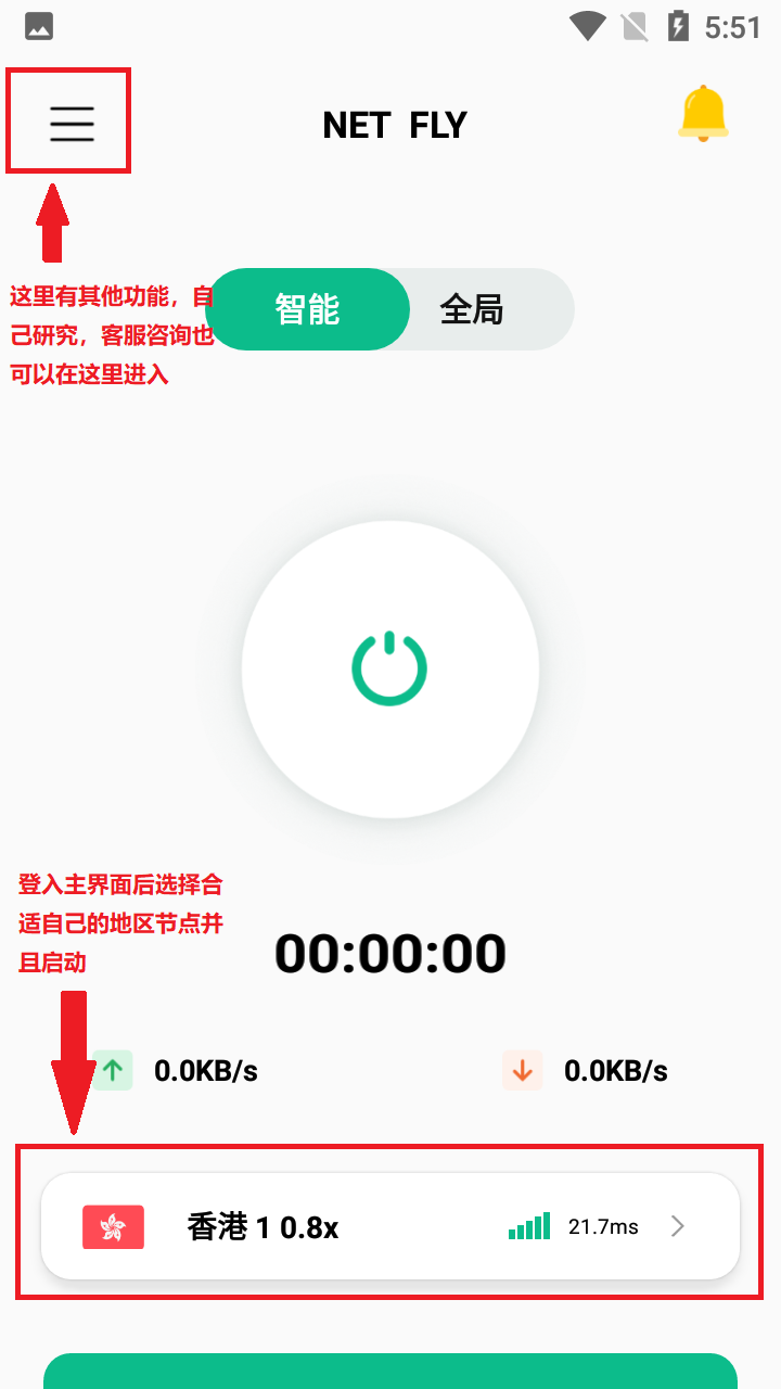 登入主界面后选择合适自己的地区节点并且启动