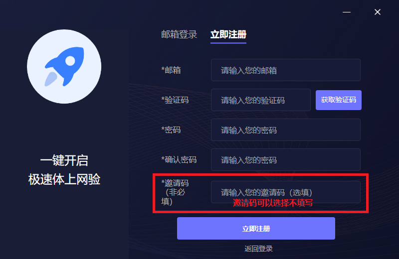 正确的填写您的邮箱、密码并填入邮件收到的验证码,邀请码非必填,可以选择不填写